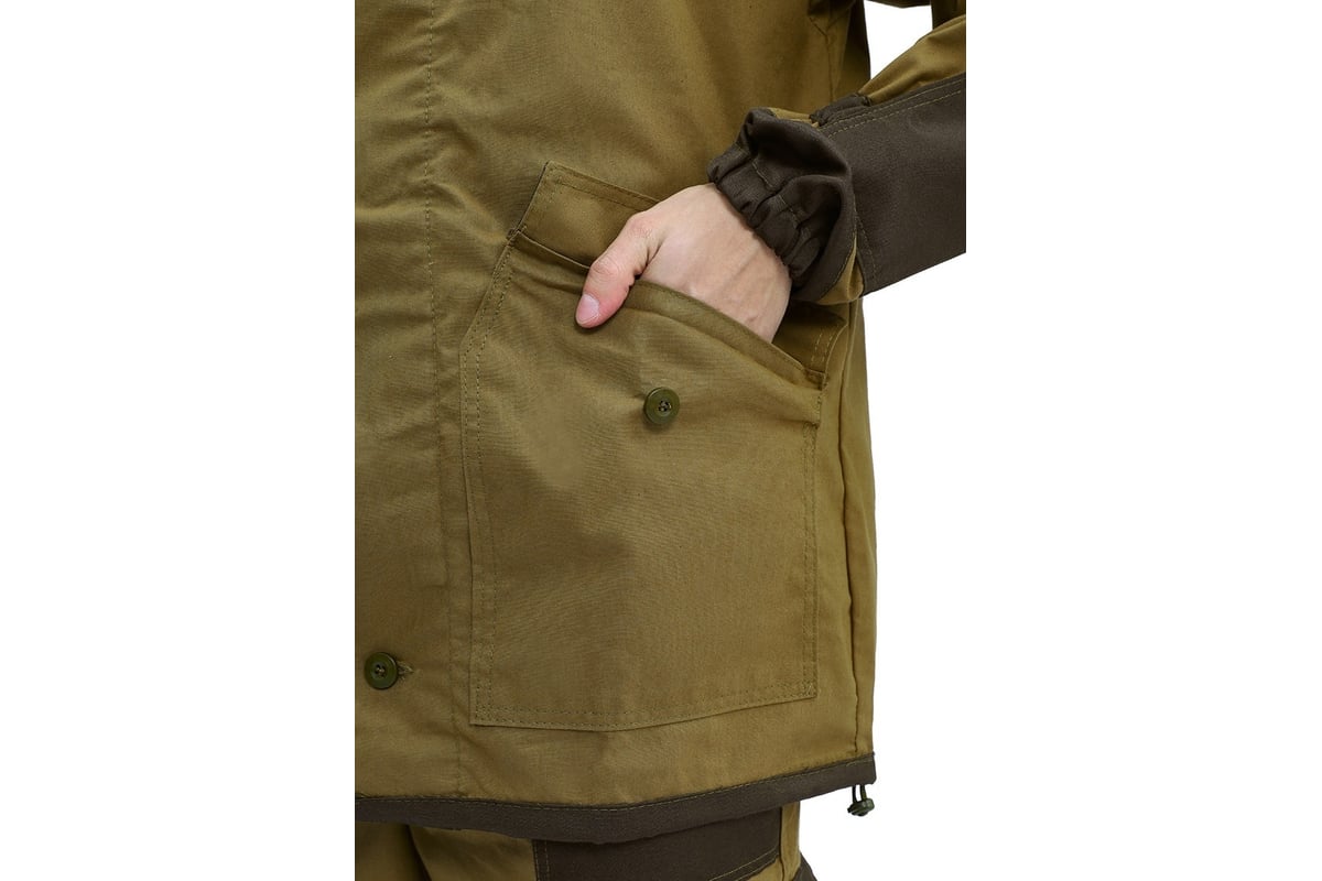 Брюки подошли, куртка оказалась на пару размеров больше. Боковые карманы брюк - ни о чем, такое ощющение, что пожалели ниток сделать пару лишних стежков - из них все вываливается, т.е. чистая декорация. "Область локтя, манжеты, область сидения, передняя часть в области колеса усилены накладками из отделочной ткани, что обеспечивает повышенную износостойкость."© - это не НАКЛАДКИ, это просто куски ткани сшитые вместе с основной тканью. Фиксаторы на капюшон и низ куртки -просто песня, они ничего не фиксируют. Пропитка - если и была, то первые капли дождика ее смыли.. Короче, просто невнятная роба сомнительного назначения.