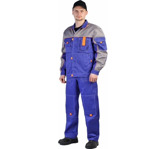 Летний мужской костюм URSUS Профи васильковый/светло-серый КОС121-041; 44-46, 182-188 защищает от загрязнений при работе на производстве. Состоит из прямой укороченной куртки и полукомбинезона.