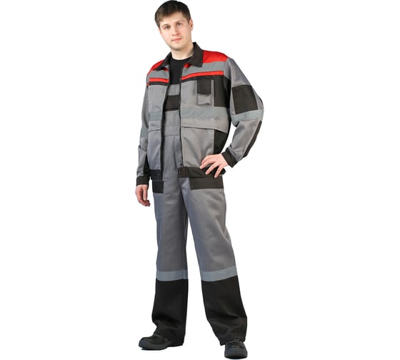Технические характеристики летнего мужского костюма URSUS Респект серый с красно- чёрной отделкой, с п/к, размер: 48-50, 182-188