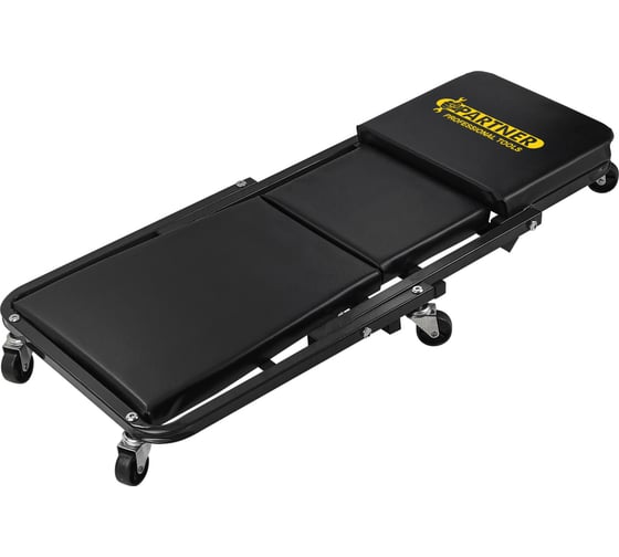 Стул-лежак подкатной трансформер от бренда PARTNER — удобное и практичное оборудование для автосервисов, гаражей и домашнего использования. Конструкция позволяет использовать его как в разложенном виде (лежак), так и в сложенном (стул), обеспечивая комфорт и функциональность при проведении ремонтных работ. Прочный металлический каркас и мягкое поролоновое наполнение делают изделие надёжным и удобным для мастера.