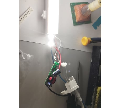 После приложения рук (замена резистора на плате драйвера с 1.4 на 2 Ом) ток падает с 123 мА до 84 мА. Яркости хватает вполне при этом. Ресурса светодиодов теперь хватит не на пол года а на несколько лет.
