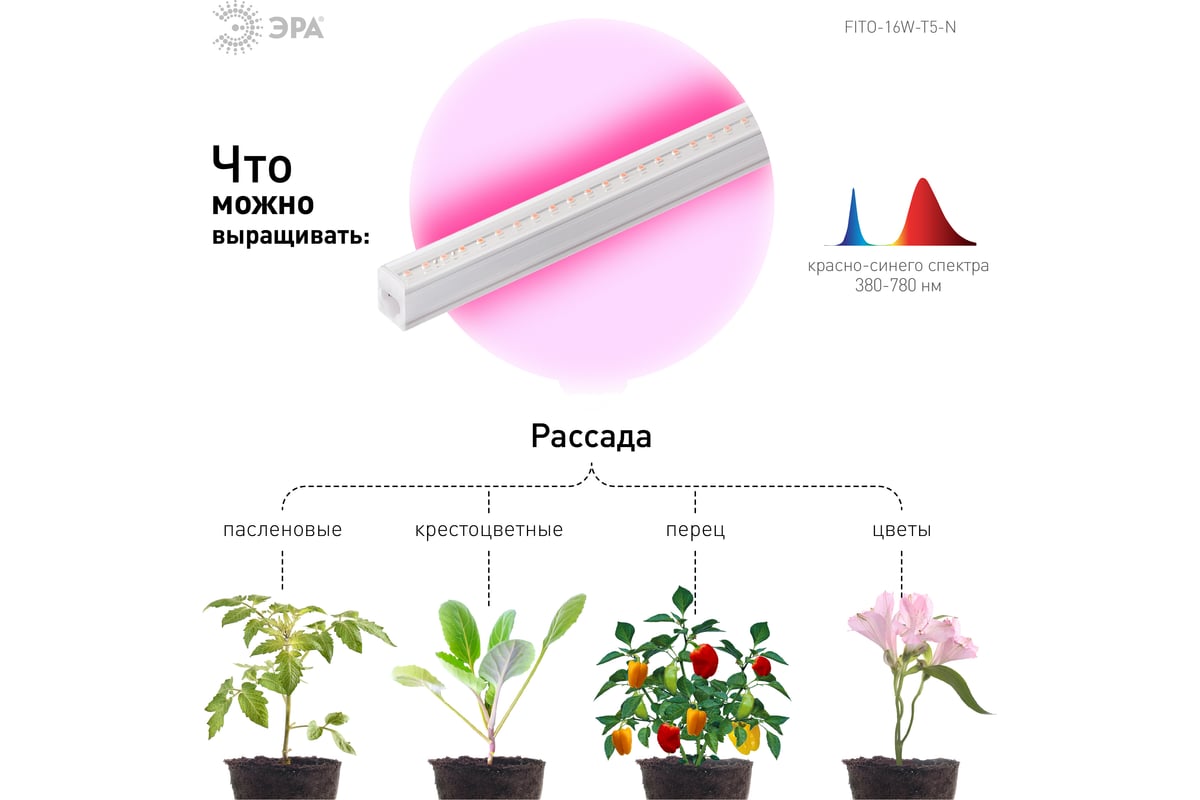 Вопросы и ответы о светильнике ЭРА FITO красно-синего спектра 16W Т5N Б0045233