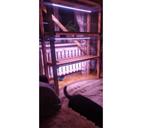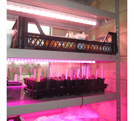 Установил светильники на металлический стеллаж(в комплекте есть крепеж). Стеллаж со светильниками стоит в мало освещаемой комнате, а второй не посредственно у окна. На стеллаже со светильниками рассада на много лучше чем на стеллаже у окна. Светильники отлично справляются со своей задачей.