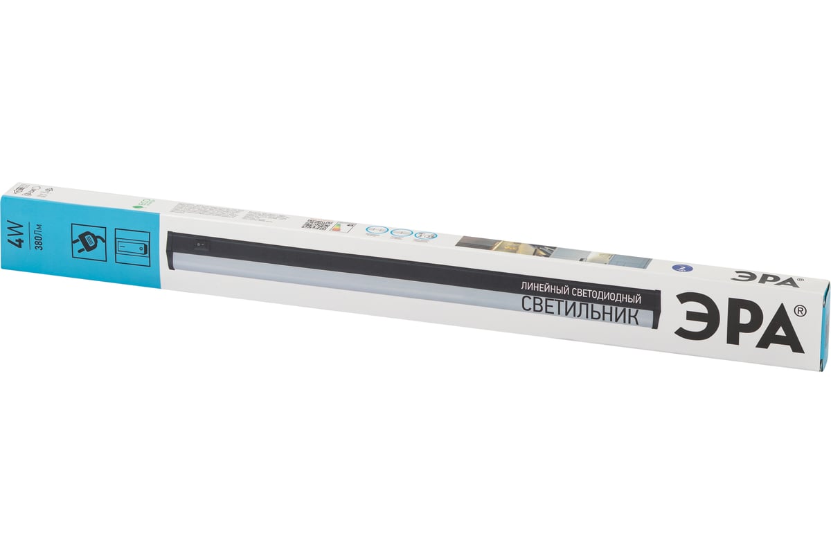 Линейный светодиодный светильник ЭРА LLED0104W4000B 4Вт 4000K L314мм с выключателем черный Б0065563
