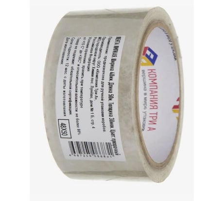 Технические характеристики ленты Компания Три А 48 мм, 50 м, 43 мкм, прозрачная