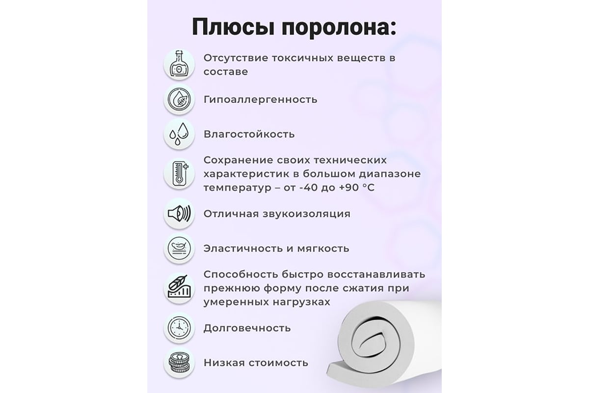 Благодаря ячеистой структуре отлично сохраняет форму. Ячейки заполнены воздухом, который обладает отличными изоляционными качествами.