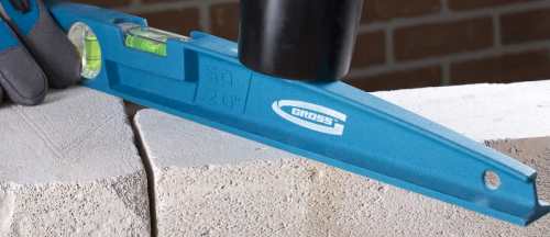 Литой уровень Gross 34915 длиной 500 мм снабжен 2 глазками для построения вертикали и горизонтали. Инструмент оптимально подходит для использования при укладке напольной и настенной плитки, кирпичной кладки, брусчатки и т.д.