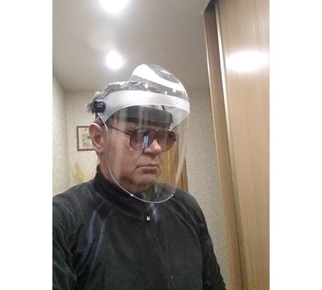 Хорошо защищает от летящих в лицо ненужностей. Удобно с маской работать, регулируется хорошо. Нет наклейки на видном месте, которую не отодрать.