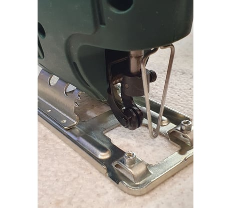 Самый дешевый лобзик в данном ценовом сегменте. Есть трёхрежимный маятниковый механизм. Плавный регулятор изменения скорости. Для удобства в работе, включенную кнопку можно зафиксировать. Перед тем, как регулятор скорости перейдет в максимальный режим, происходит щелчок. Мне кажется здесь он нелишний, чтобы понимать что уже достигнут максимальный ход инструмента.