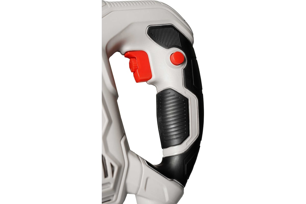 - Скобовидная рукоятка оснащена резиновыми накладками, что предотвращает выскальзывание из рук