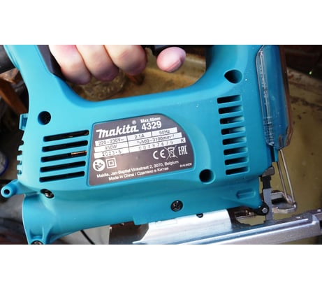Купил, когда увидел обзор лобзиков. Товарищ там включил ряд инструментов на фиксацию работы и поставил на ровный стол. Все «разбежались», кроме одного. Только Макита 4329 была неподвижна, что говорило об очень хорошей балансировке двигателя и подвижных частей. Вот и приобрел. Предварительно установил платформу относительно пилки на 90 градусов, при этом немного для себя неожиданным обнаружил кривизну всех полотен, которые у меня были. Поставил на стол и с надеждой включил. Но полного успеха мой экземпляр не заимел, немного, но лобзик «гулял». Не знаю, у кого «сухой» аппарат и без подтеков, но какие экземпляры встречал в магазинах, все текли. Также и мой не отличился. Особенно это очевидно глядя на ручку возле колесика оборотов. Периодически вытираем, тряпочка дежурно обосновалась в кейсе. Крепление пилки в челноке производится винтиком с помощью инбусового ключа 3мм и лично меня совершенно такой конструктив не напрягает. Челнок имеет поперечный люфт в 0,5мм. На режиме без маятника ( всего их 4: без и три маятниковые ) и с оборотами на мах (т.е. колесико на 6) пилкой бош 101В режет очень чисто, сравнимо с японской ножовкой. Платформа не имеет прямоугольной замкнутости по периметру, есть вырез спереди, что позволяет спокойно видеть и контролировать рез. Видно и без дополнительной подсветки, которой кстати и нет. Да, навешивание лазерных целеуказателей, имение лампочки, конечно хорошо, но там и ценник уже далек от повседневности. Расстояние от пятки пилки до защитной скобы 22мм, т.е. если кому надо применить широкую пилку Т142 (ширина 32мм), то придется скобу убирать ( с набегу снять её не получилось, мешает челнок, требуется разбирать корпус).
