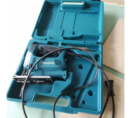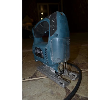 Купил, когда увидел обзор лобзиков. Товарищ там включил ряд инструментов на фиксацию работы и поставил на ровный стол. Все «разбежались», кроме одного. Только Макита 4329 была неподвижна, что говорило об очень хорошей балансировке двигателя и подвижных частей. Вот и приобрел. Предварительно установил платформу относительно пилки на 90 градусов, при этом немного для себя неожиданным обнаружил кривизну всех полотен, которые у меня были. Поставил на стол и с надеждой включил. Но полного успеха мой экземпляр не заимел, немного, но лобзик «гулял». Не знаю, у кого «сухой» аппарат и без подтеков, но какие экземпляры встречал в магазинах, все текли. Также и мой не отличился. Особенно это очевидно глядя на ручку возле колесика оборотов. Периодически вытираем, тряпочка дежурно обосновалась в кейсе. Крепление пилки в челноке производится винтиком с помощью инбусового ключа 3мм и лично меня совершенно такой конструктив не напрягает. Челнок имеет поперечный люфт в 0,5мм. На режиме без маятника ( всего их 4: без и три маятниковые ) и с оборотами на мах (т.е. колесико на 6) пилкой бош 101В режет очень чисто, сравнимо с японской ножовкой. Платформа не имеет прямоугольной замкнутости по периметру, есть вырез спереди, что позволяет спокойно видеть и контролировать рез. Видно и без дополнительной подсветки, которой кстати и нет. Да, навешивание лазерных целеуказателей, имение лампочки, конечно хорошо, но там и ценник уже далек от повседневности. Расстояние от пятки пилки до защитной скобы 22мм, т.е. если кому надо применить широкую пилку Т142 (ширина 32мм), то придется скобу убирать ( с набегу снять её не получилось, мешает челнок, требуется разбирать корпус).