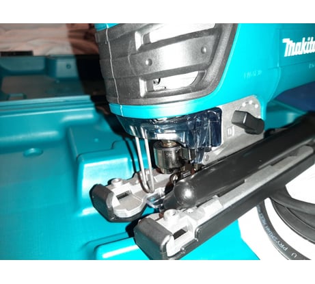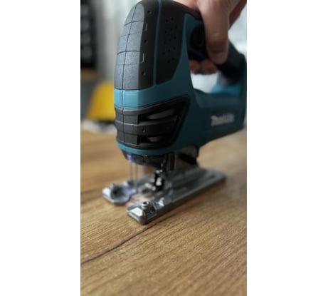 Makita 4350 FCT — лобзик, который пилит, а не парит мозги Работаю с инструментом не первый год, и этот лобзик — как надёжный напарник: не орёт, не дёргается, не ломается. Мощности 720 Вт хватает с головой — пилит и дерево, и металл, и даже мою веру в дешёвые аналоги. Плюсы, которые реально радуют: Плавный старт — не рвёт в руки, как дикий бык. Подсветка! Видно, куда пилишь, даже если света — как в подвале тёщи. Маятниковый ход и регулировка оборотов — регулируется под настроение и материал. Пилка меняется без ключей (в комплекте их аж 5 штук для 3-х видов материалов)— нажал, вставил и погнал. При работе идет плавно и ровно, даже при наличии немного кривых рук. Хорошо работает система сдува опилок, сдувает практически как Dyson. Насадку для пылесоса можно установить с любой стороны. Противоскольная вставка — расходник, тает быстрее шоколадки на солнце, но ее наличие скорей приятный бонус, чем жирный минус из-за которого стоит отказываться от данного аппарата. Удобный пластиковый кейс, в котором не бренчит и не дрягается все как в маракасах. В целом, Makita 4350 FCT — это как хорошая жена: надёжная, не визжит, работает долго и приносит удовольствие в работе. Рекомендую к покупке, не пожалеете! Я в полноц мере ощутил работу проыессиональным инструментом
