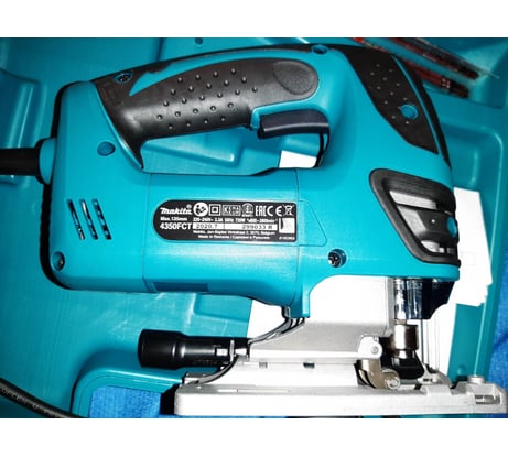 Makita 4350 FCT — лобзик, который пилит, а не парит мозги Работаю с инструментом не первый год, и этот лобзик — как надёжный напарник: не орёт, не дёргается, не ломается. Мощности 720 Вт хватает с головой — пилит и дерево, и металл, и даже мою веру в дешёвые аналоги. Плюсы, которые реально радуют: Плавный старт — не рвёт в руки, как дикий бык. Подсветка! Видно, куда пилишь, даже если света — как в подвале тёщи. Маятниковый ход и регулировка оборотов — регулируется под настроение и материал. Пилка меняется без ключей (в комплекте их аж 5 штук для 3-х видов материалов)— нажал, вставил и погнал. При работе идет плавно и ровно, даже при наличии немного кривых рук. Хорошо работает система сдува опилок, сдувает практически как Dyson. Насадку для пылесоса можно установить с любой стороны. Противоскольная вставка — расходник, тает быстрее шоколадки на солнце, но ее наличие скорей приятный бонус, чем жирный минус из-за которого стоит отказываться от данного аппарата. Удобный пластиковый кейс, в котором не бренчит и не дрягается все как в маракасах. В целом, Makita 4350 FCT — это как хорошая жена: надёжная, не визжит, работает долго и приносит удовольствие в работе. Рекомендую к покупке, не пожалеете! Ч в полной мере почувствовал какого работать профессиональным инструментом.