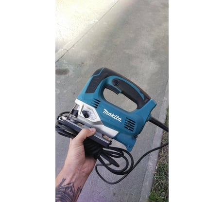 Очень хороший лобзик! Удобно держать в руке (прорезиненная рукоятка). При работе вибрация не ощущается. Вес стандартный (не тяжелый). Не очень шумный (это конечно зависит от уровня оборотов, но даже при максимуме дискомфорта не вызывает). Возможность регулировки оборотов и выбор режима маятникого хода позволяет подстраиваться под разный тип материала (в инструкции есть подробное описание). Подходит как для прямого пила, так и фигурной резки. Была задача фигурной пилки плит ДСП - предыдущие два лобзика низкой ценовой категории к сожалению не справились с задачей и пали в неравной борьбе. Лобзик Makita JV0600К справился без проблем. Быстрый механизм замены пилки очень удобный, не надо ничего откручивать и закручивать, пригодится при смене пил при работе с разными материалами. Есть возможность изменять угол наклоны подошвы до 45 градусов. В комплект входит качественная пилка, можно сразу приступать к работе. Качество среза очень достойное. Отдельное спасибо производителю за длинный провод - 2,5м, то что надо! Кейс достаточно вместительный, проблем с укладкой шнура не возникает, пластик хорошего качества и очень удобная ручка для переноски. Важное дополнение - есть обдув рабочей зоны, что очень удобно, т.к. опилки не мешают видеть разметку. Покупкой очень доволен! Своих денег инструмент однозначно стоит.