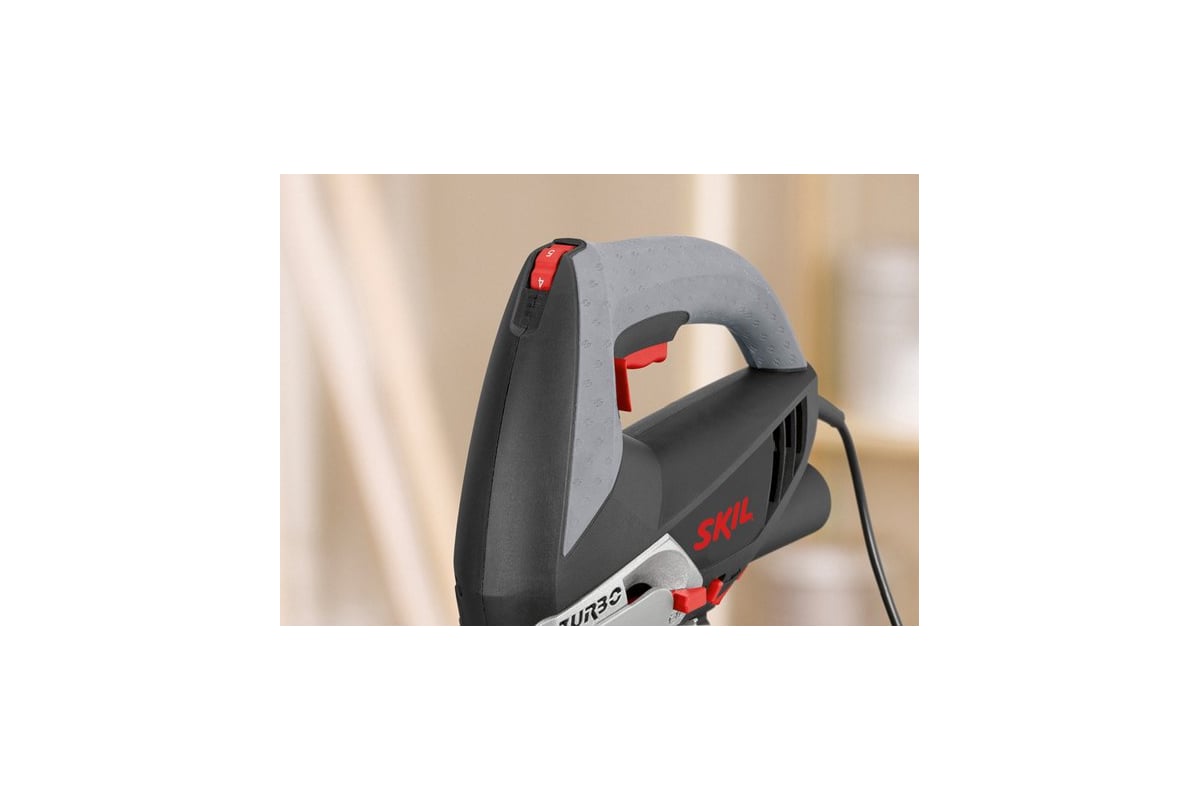 Лобзик SKIL 4381LA F0154381LA имеет 2 ступени маятникового хода. Рукоятка оснащена мягким покрытием, что способствует комфортной работе пользователя. Благодаря функции Turbo можно переходить от обычного к ускоренному режиму пиления. Встроенный патрубок позволяет подключать профессиональный пылесос для удаления стружки из зоны реза. В качестве оснастки подходят лобзиковые пилки с Т-образными и U-образными хвостовиками.