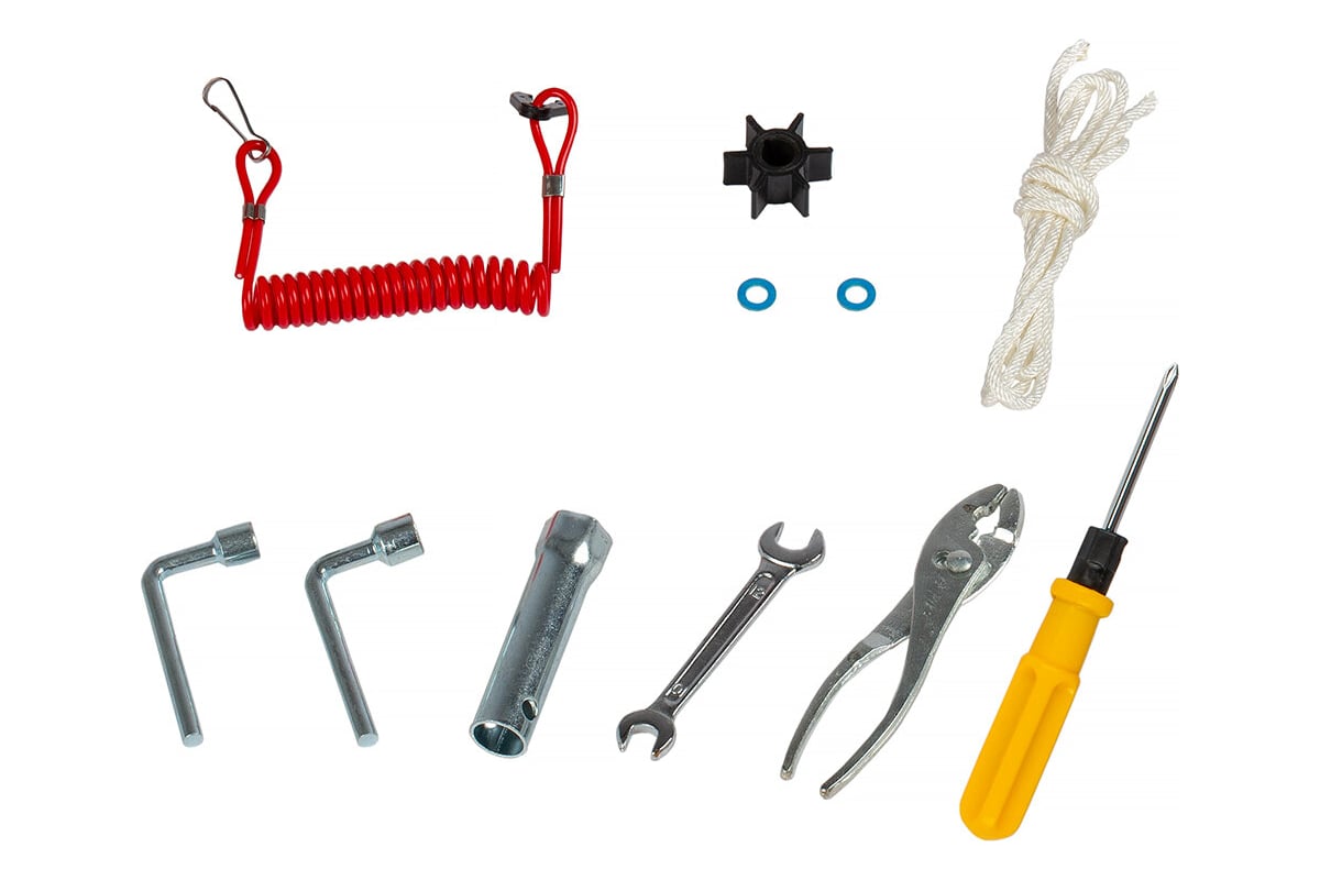 Мотор запускается ручным стартером, а управляется стандартным румпелем с поворотной ручкой газа (гашеткой мотоциклетного типа) с антипроскальзывающими насечками.