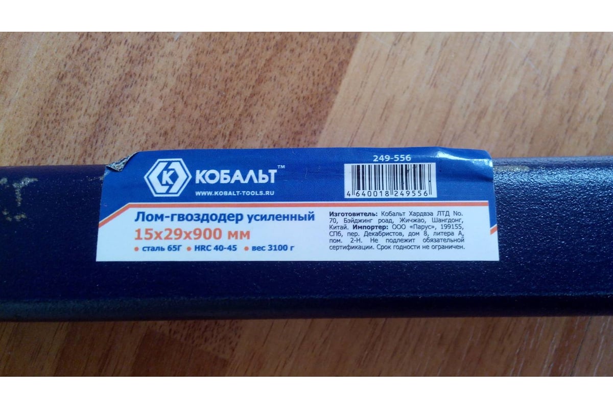 Технические характеристики лома-гвоздодера КОБАЛЬТ 249-556