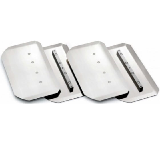 Лопасти представляют собой стальные ножи, поставляются в комплекте - 4 штуки. Крепление лопастей происходит под небольшим углом и образует своеобразный крест. При движении затирочные ножи проглаживают, уплотняют бетонную поверхность, удаляя излишки и устраняя наплывы и неровности.