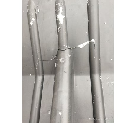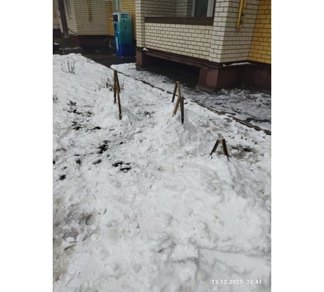Лопнул пластик совка лопаты сразу же, при первом "тычке" в сугроб. (Хотел первым снегом собранным дворником в рыхлый сугроб несколько утеплить обрезанные на зиму кусты роз у подъезда дома. Сугроб был мягким и ничего твердого в нем не было)