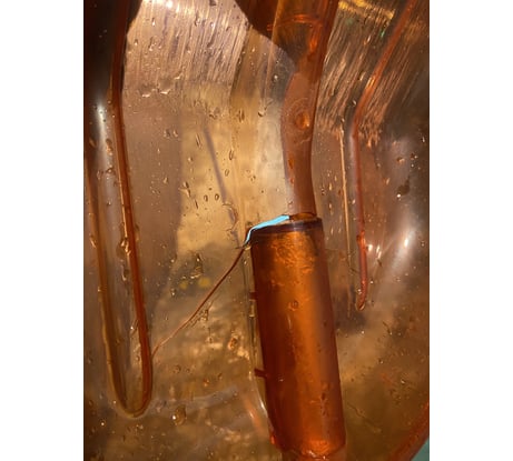 Какой-то дешевый поликорбанат (если он там есть) , сломалась быстро при условии что нечего особого ей не делало Даже сутки не прошли после покупки…очень жаль