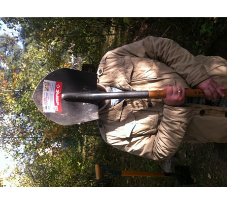 К сожалению копать ей подмосковную тяжёлую глину невозможно. Хорошо у меня в пару ей была вторая штыковая. Старой рыхлил этой вынимал грунт из ямы, выбирает она хорошо. Берите с ней заточной диск для болгарки, точно лишним не будет. Черенок из натурального дуба, пластиковая рукоятка на конце черенка немного болтается, но держится.