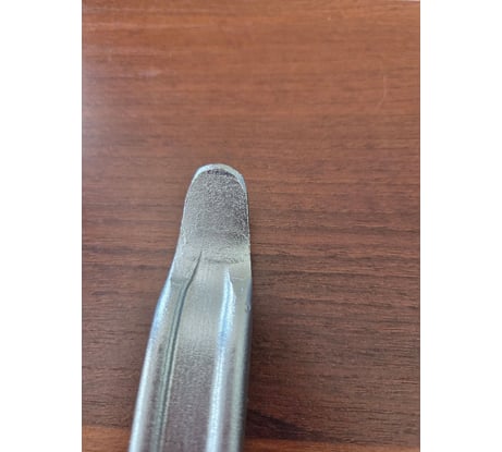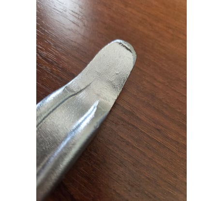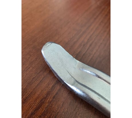 Присутствуют дефекты отливки на рабочих элементах лопатки фото 4 общий вид: - на изогнутом конце есть облой, завалена окружность, есть заусенки на гранях, фото 2, 3, 4, - на плоском конце завалена окружность, есть заусенки на гранях, фото5, 6.
