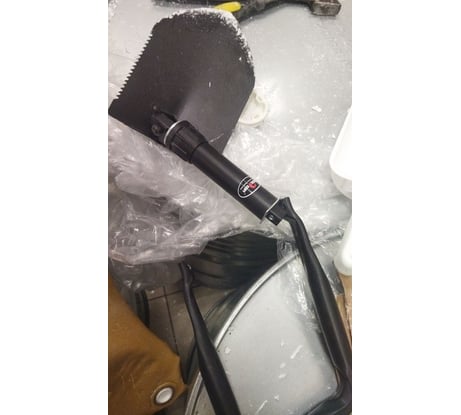 Лопата на экстренный случай, занимает мало места в багажнике. В итоге было дополнена полноразмерным ломом.