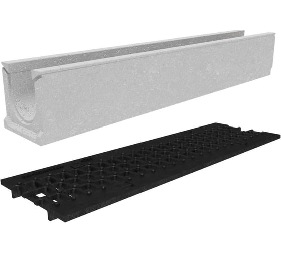 Gidrolica Лоток бетонный DN100 H157, без уклона с чугунной ячеистой решеткой и пружинным крепежом выдерживает нагрузки до 25 тонн.