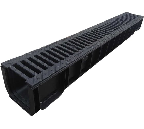 Лоток бетонный Gidrolica DN100 H80 мм с чугунной щелевой решёткой и крепежом, класс С250 11000506