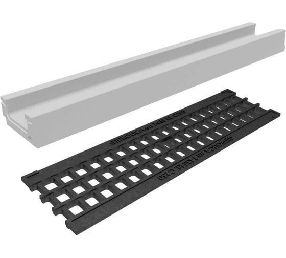 Лоток бетонный Gidrolica DN100 H80 мм с чугунной ячеистой решеткой и крепежом C250 11000507