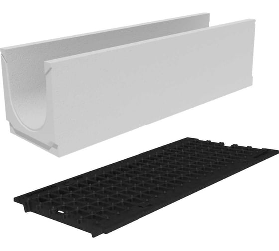 Материал лотка выдерживает любые погодные условия, а чугунная решетка устойчива к воздействию агрессивных веществ.