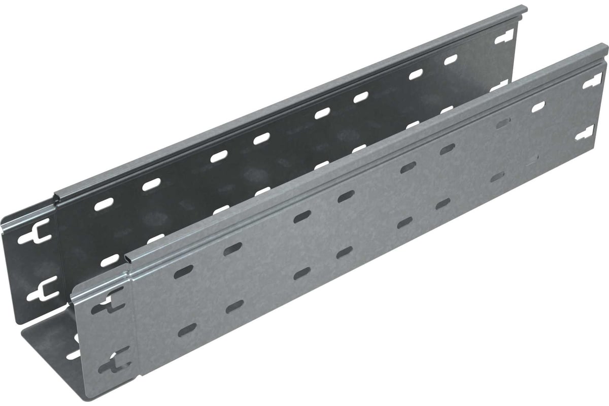 Листовой лоток с перфорацией "Быстрый монтаж PLUS" - высота борта 100 мм, ширина секции 500 мм и длина 2500 мм, используется для прокладки и монтажа кабельных трасс.