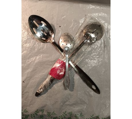 Отличная ложка-шумовка (ложища!). Длинная, 335 мм., удобная. Теперь в кастрюле не потеряется. А сколько бедных маленьких шумовочек было утоплено, сварено и съедено! Не сосчитать. А теперь одна, навечно.