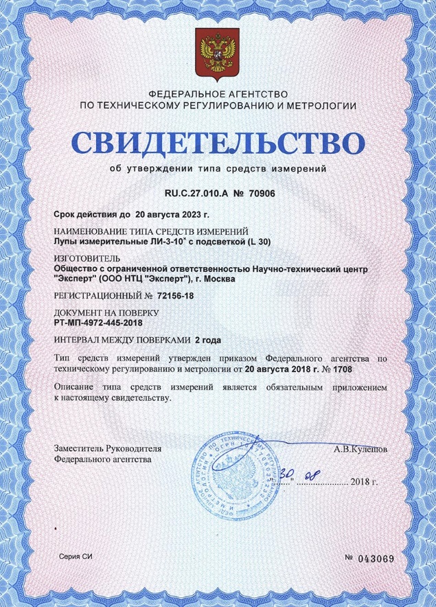 Лупа измерительная ЛИ-3-10х с подсветкой L30 НТЦ Эксперт ntc-000024 служит для точного измерения длины на плоскости. Три стеклянные линзы обеспечивает десятикратное увеличение. Светодиодная подсветка позволяет уверенно работать не только при дневном, но и при искусственном свете. Измерительная лупа L30 внесена в Госреестр и является средством измерения утвержденного типа (№ 72156-18). Модель соответствует требованиямГОСТ 25706-83и инструкции по визуальному и измерительному контролю РБ «Методические рекомендации о порядке проведения визуального и измерительного контроля»(РД 03-606-03). Поставка лупы возможна как со свидетельством о поверке, так и без метрологической аттестации. Межповерочный интервал – 2 года.