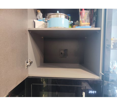 Лючок покупался для установки в вырез задней стенки пенала кухонного гарнитура для доступа к вилке встроенной микроволновки