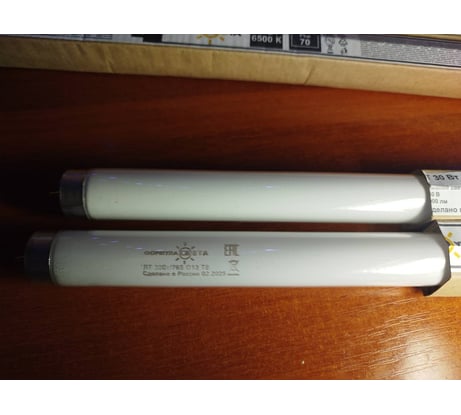 Покупал для светильника в аквариум. Лампы запустились с ЭПРА довольно быстро и работают без мерцаний. В родные патроны входят без проблем. Цвет и световой поток устраивает. Дальше посмотрим сколько прослужат. Думаю на пару лет должно хватить. За 68 руб., взял 4 штуки (2 в резерв). За такие деньги претензий нет. В магазинах лампы подобного плана стоят уже от 300 руб и выше.