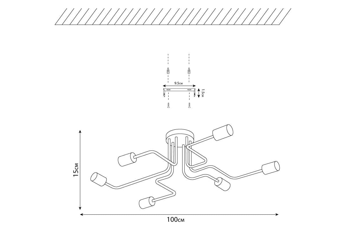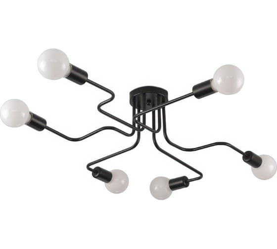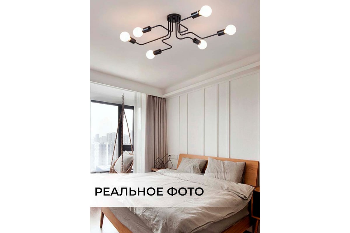 Потолочная люстра в стиле лофт рассчитана на 6 ламп (не входят в комплект), подойдет для любой комнаты: спальни, на кухню, в прихожую, гостиную, подойдет для зала, в коридор.