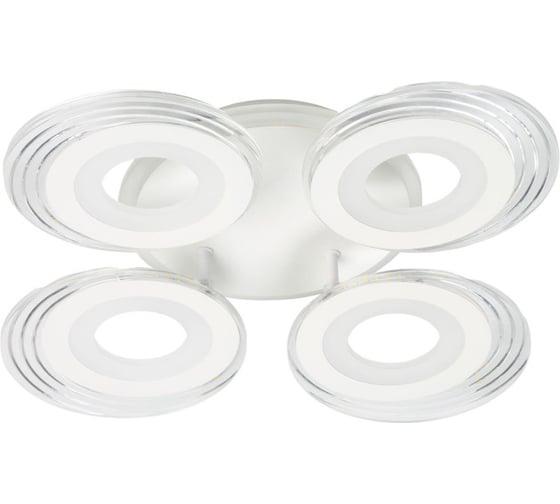 Металлическое основание светильника окрашено в белый цвет. Каркас плафона выполнен из сплава алюминия с цинком и окрашен в цвет основания. Светодиодные источники света закрыты белым матовым и прозрачным акрилом.