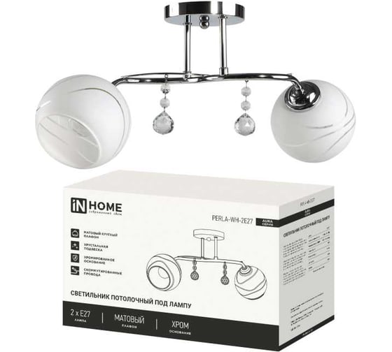 Люстра под лампу IN HOME AURA PERLA-WH-2E27 2хЕ27 матовый плафон, хромированный корпус 4690612064116