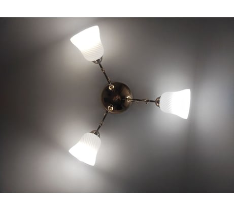 Полностью матовые плафоны. Из-за этого светопропускание плафонов низкое: они только светятся, причём очень контрастно. Годится только для небольшой комнаты (10-12) кв.м.