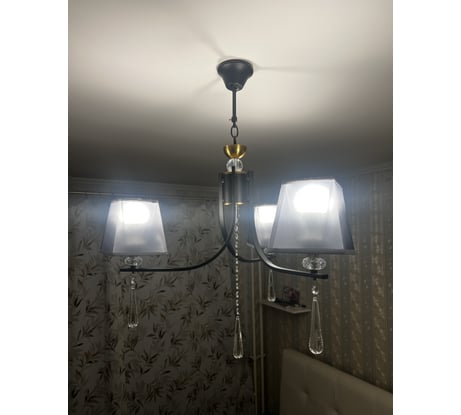 Хорошая люстра, но нам показалась длинноватой(потолок 2,75м.)Самостоятельно убрали 3 звена на цепи.