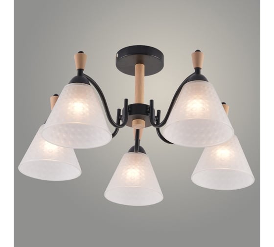 Люстра Росток XA1627B/5 BK+WOOD черный+дерево 5х60W E27 d600 h295, HN25 988391259