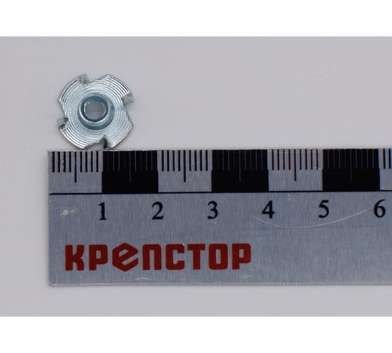 Особенность конструкции заключается в внутренней резьбе и расширенной головке с усами или выступами, которые позволяют гайке надежно зафиксировать ее внутри отверстия в дереве без необходимости использования дополнительных крепежных элементов. Усики или выступы обеспечивают плотное сцепление с древесиной, предотвращая вращение и выскальзывание гайки при нагрузках.