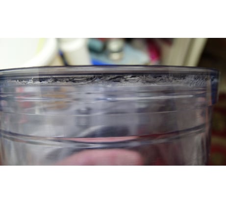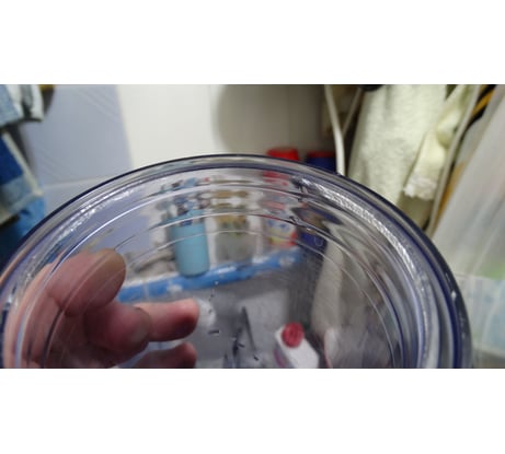 В работе 1 год. Недавно заметил, что внутреняя поверхность покрылась какими-то пятнами, стала почти непрозрачная. Причем это не загрязнение, не отмывается, на ощупь шершавая поверхность. Если тут есть представители - прокомментируйте.