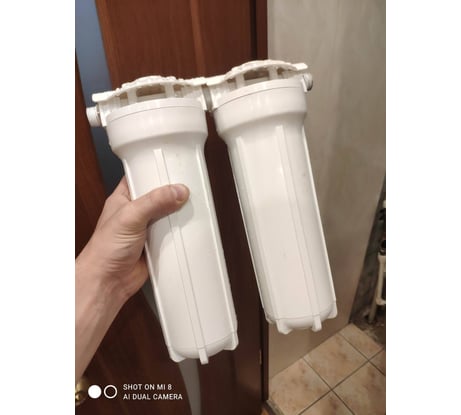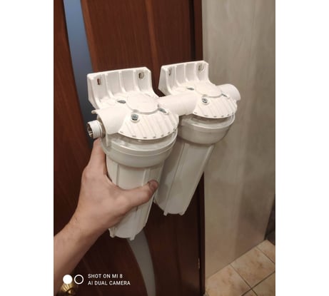 Хороший корпус фильтра. Если соединяете в несколько штук нужно правильно собрать. Соединитель использовал с али муфта с кольцом уплотнительным, она чуть короче, чем муфта что идет в комплекте, и прокладка 1\2 19*10*2 мм. Также использовал комплект переходников Гейзер 2 шт. AMC 0407 45042. Под муфту что идет в комплекте то же можно поставить прокладку.