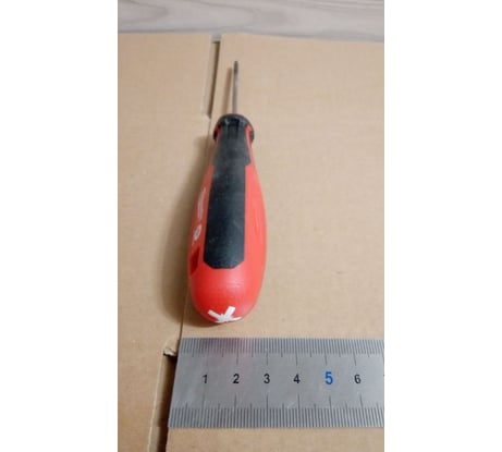 Удобная и недорогая отвертка. Эргономичная рукоятка правильной формы: не укатывается со стола благодаря скосам, достаточная длина, есть упор для пальцев в передней части. Хват цепкий, при работе не проскальзывает. На тыльной стороне пластиковый индикатор вида шлица.