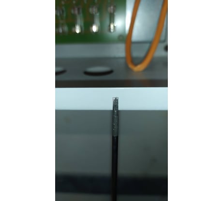 Ничего хорошего. Для тонкого жала слишком толстая ручка. Захрустела и обломилась на первом же саморезе. Саморез небольшой вкручивался в заранее просвеиленное отверстие.