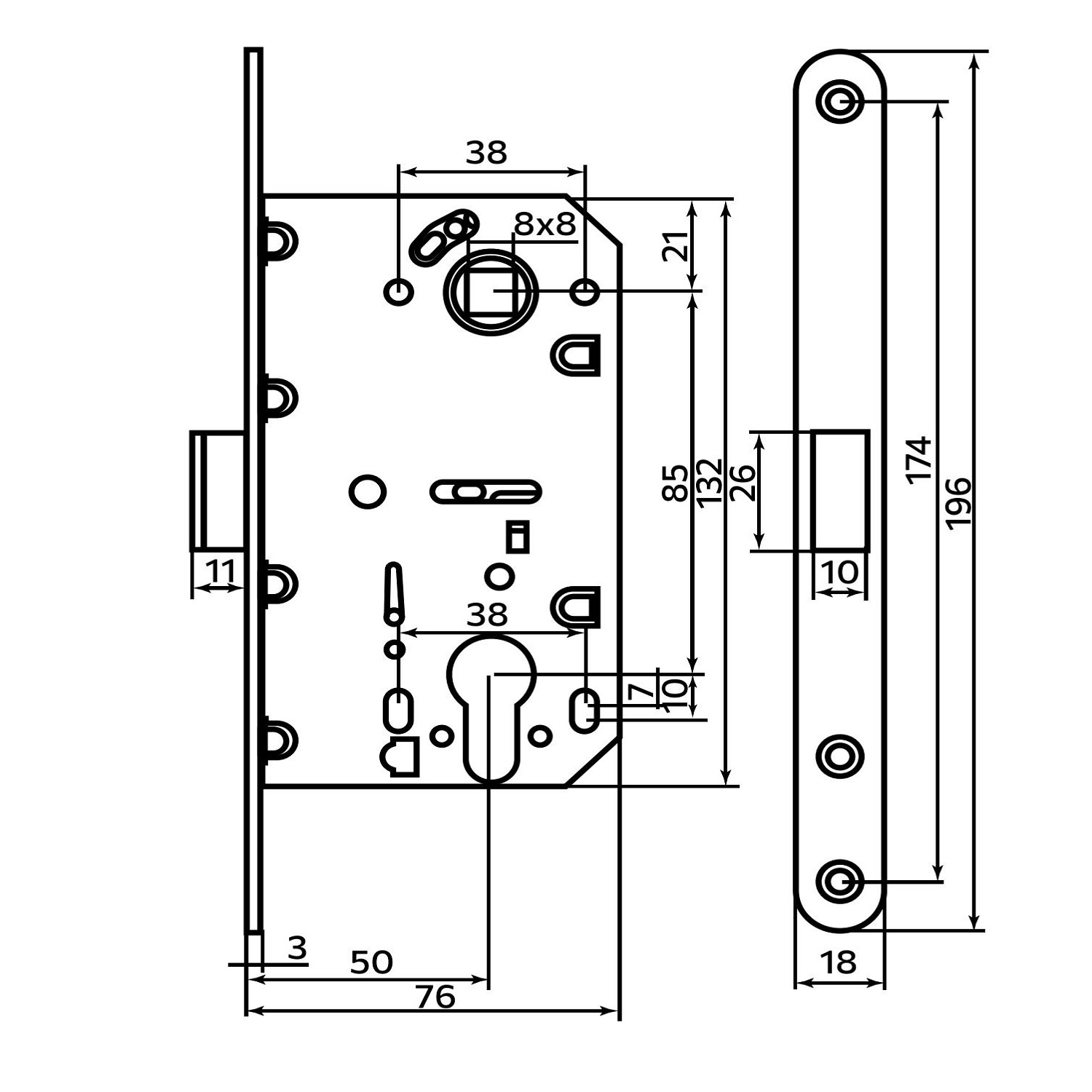Магнитная защелка под цилиндровый механизм L3085. Защелка соответствует высшему классу надежности. Корпус защелки 3085 изготовлен из высокопрочной стали. Магнитный язычок отлит из пластика АВС. В ответную планку защелки и язычок установлены магниты, что обеспечивает бесперебойную работу механизма и гарантирует долгое не размагничивание в процессе использования. Торцевая планка корпуса защелки и ответная планка имеют надежное гальваническое покрытие. Торцевая и ответная планки защелки имеют закруглённую форму, что позволяет при установке использовать фрезу для подготовки посадочного отверстия. Ширина торцевой планки 18 мм., длина 196 мм., что соответствует общепринятым стандартам. Защелка 3085 по своим техническим характеристикам превосходит аналогичные защелки других производителей и идеально подойдёт в качестве замены вышедшей из строя защелки другого производителя. Магнитную защелку можно использовать без установки в нее цилиндрового механизма, как проходной механизм.