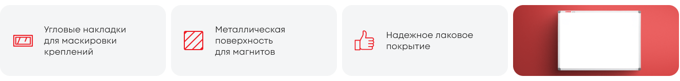 Доска размером 90х120 см имеет укрепленные пластиковые уголки, которые позволяют скрыть места крепления к стене.